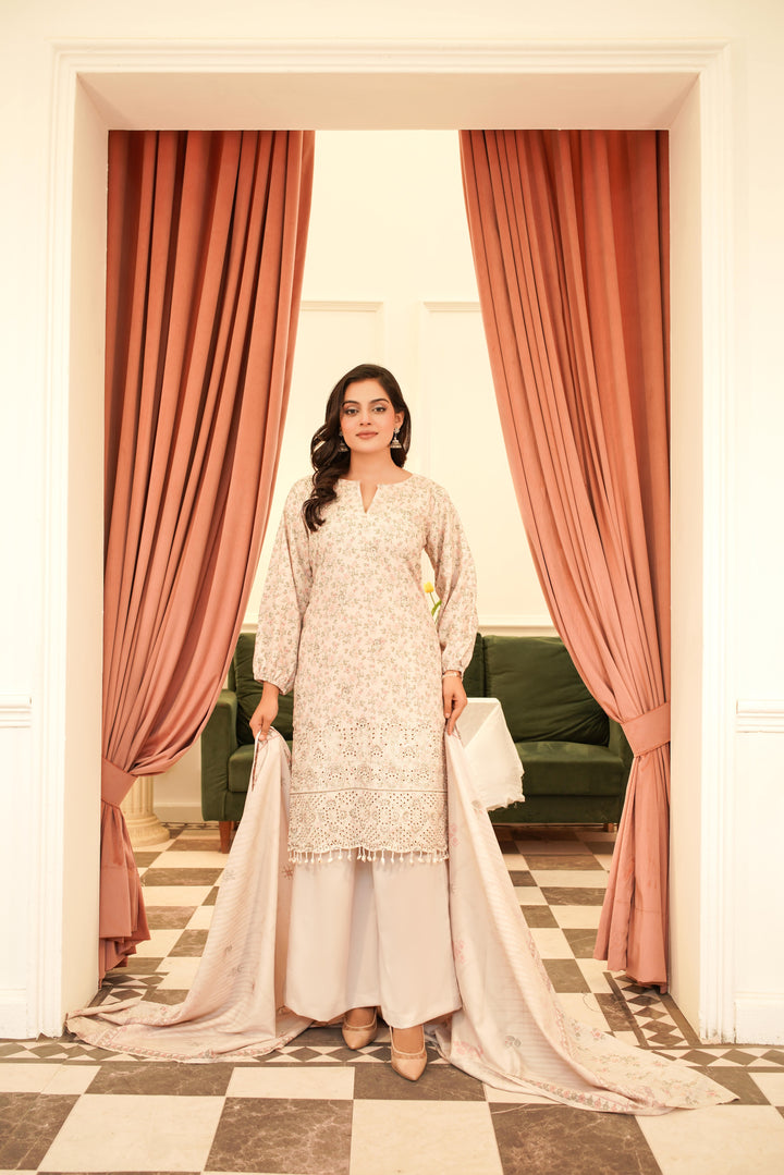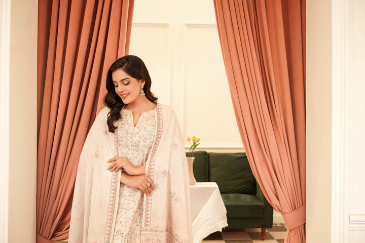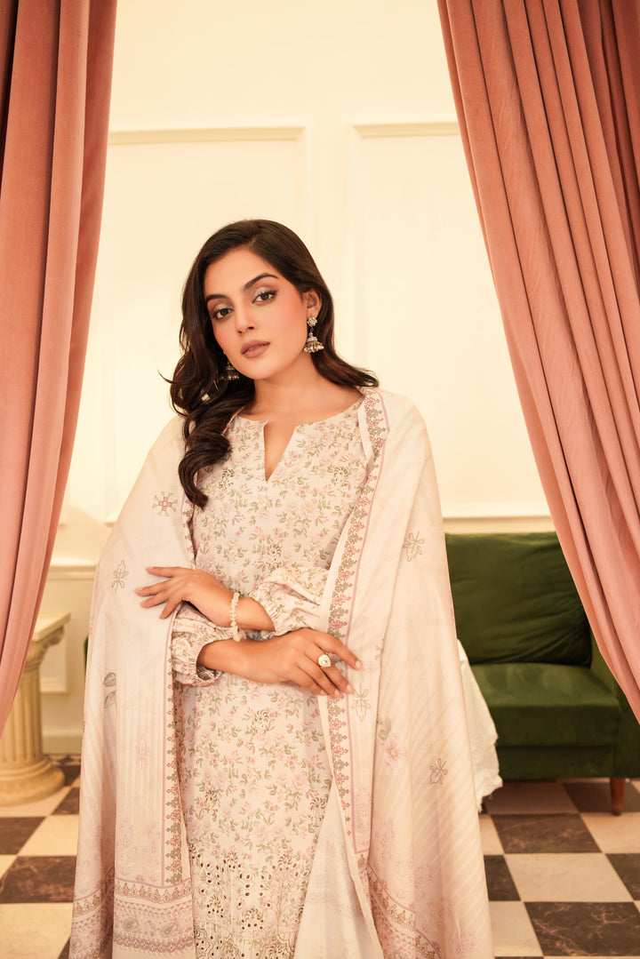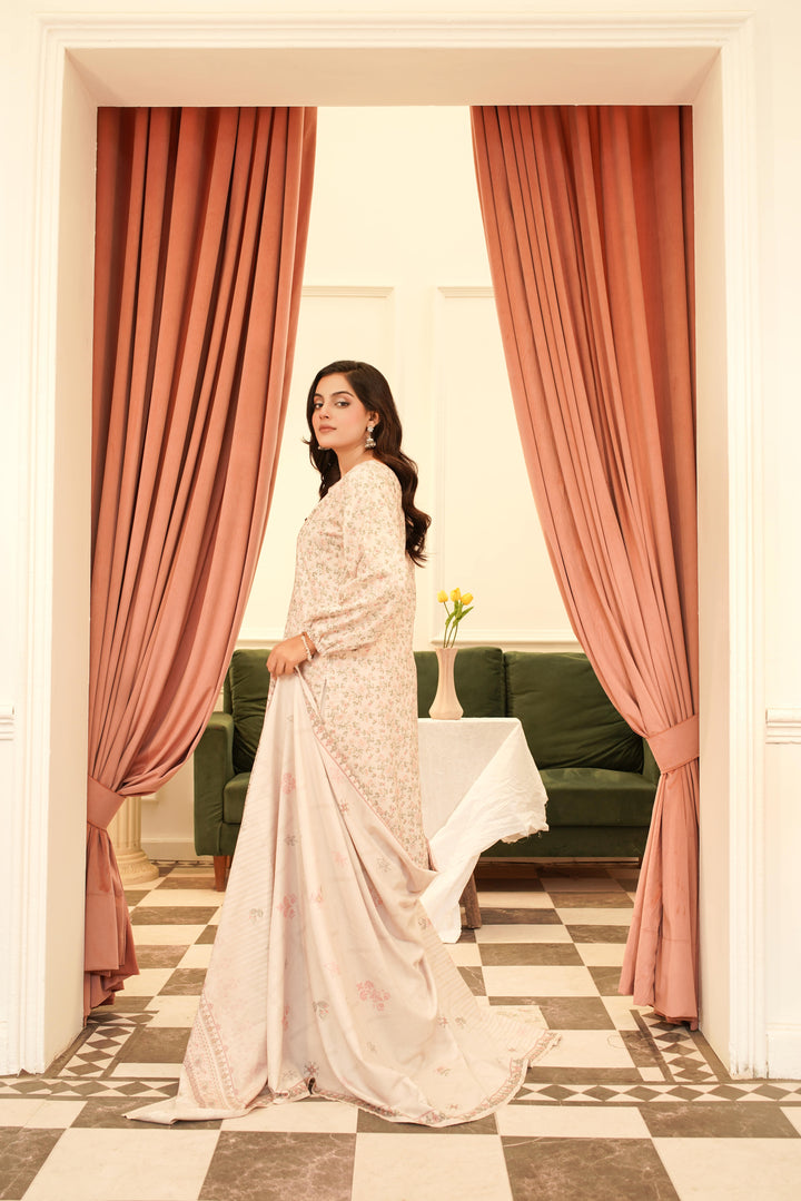 Soft, warm, and effortlessly graceful — this dhanak ensemble is adorned with delicate embroidery in gentle pastel shades, perfect for winter’s serene charm.