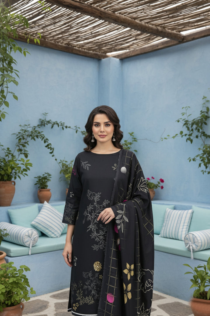 Add a touch of elegance with our Floral Brosha Linen 3-Piece Suit, featuring delicately woven floral jacquard patterns in soft green and pink tones. Crafted from premium linen jacquard, it offers a refined texture and graceful finish, perfect for stylish everyday wear.