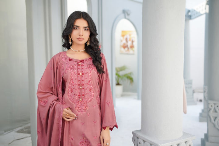 Discover timeless elegance with our Allure Collection, crafted from premium Slub Viscose for a soft and refined feel. With intricate embroidery and delicate organza detailing, this 3-piece ensemble perfectly balances comfort and sophistication — an ideal pick for mid-season and festive occasions.