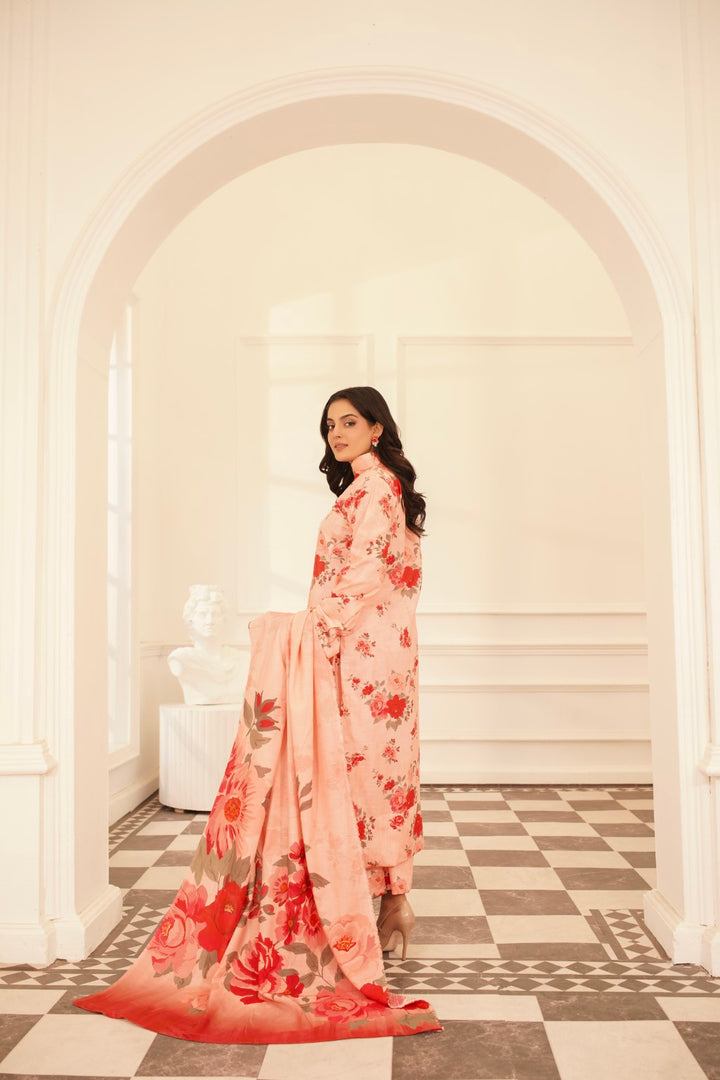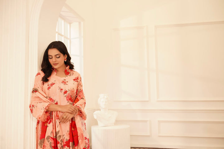 A winter essential crafted on soft, warm khaddar featuring allover floral prints on both the shirt and trousers. Designed with an amazing color scheme that lifts your look instantly, this ensemble blends comfort, vibrance, and everyday elegance.