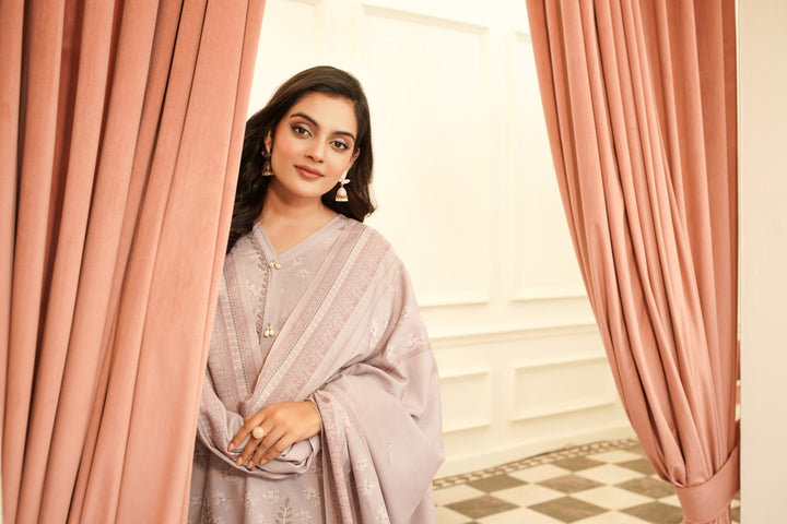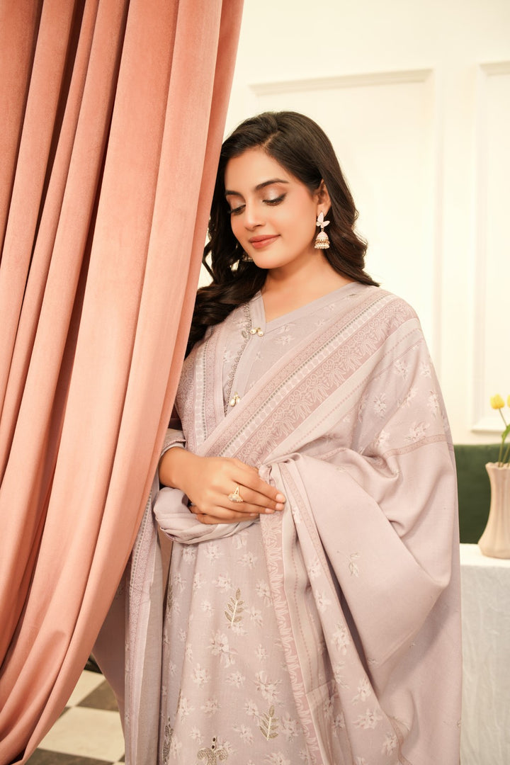 Soft, warm, and effortlessly graceful — this dhanak ensemble is adorned with delicate embroidery in gentle pastel shades, perfect for winter’s serene charm.