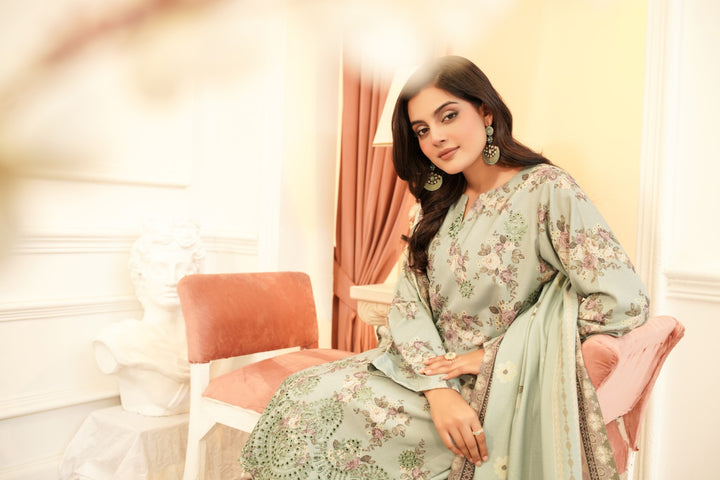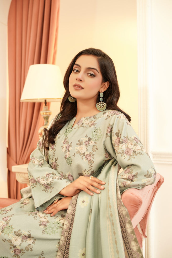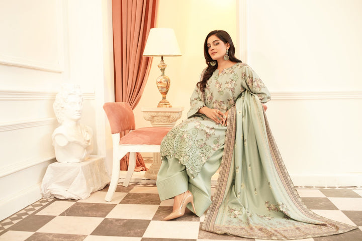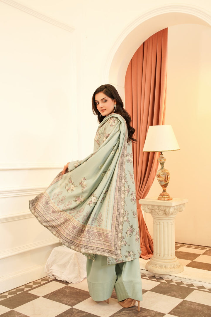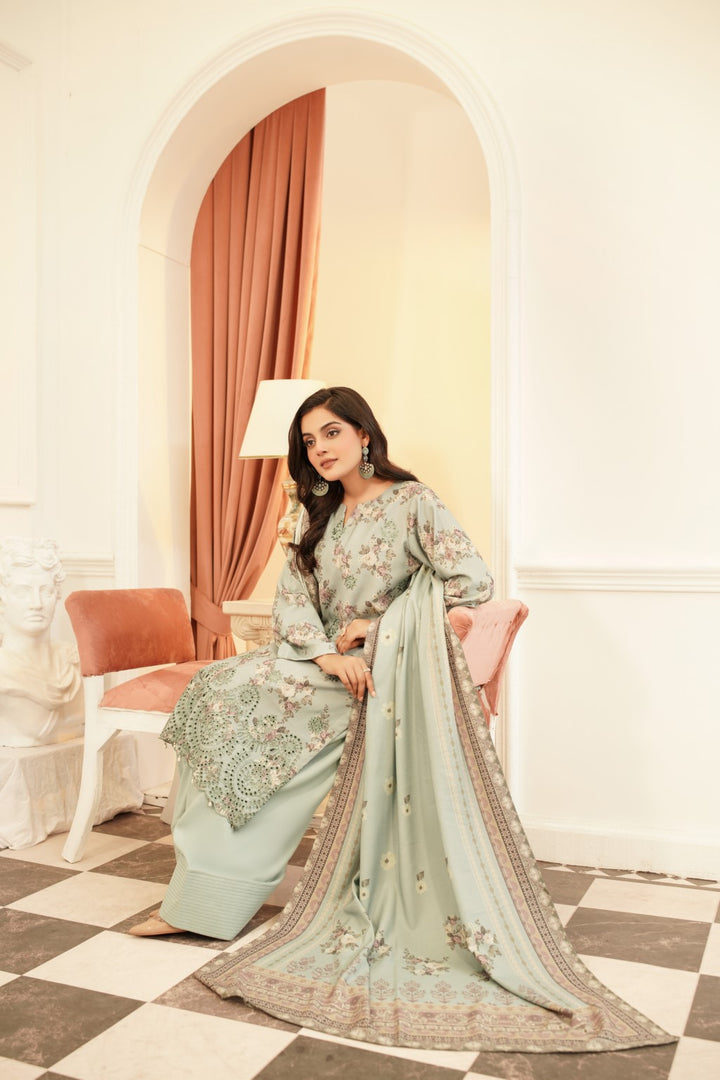 Soft, warm, and effortlessly graceful — this dhanak ensemble is adorned with delicate embroidery in gentle pastel shades, perfect for winter’s serene charm.