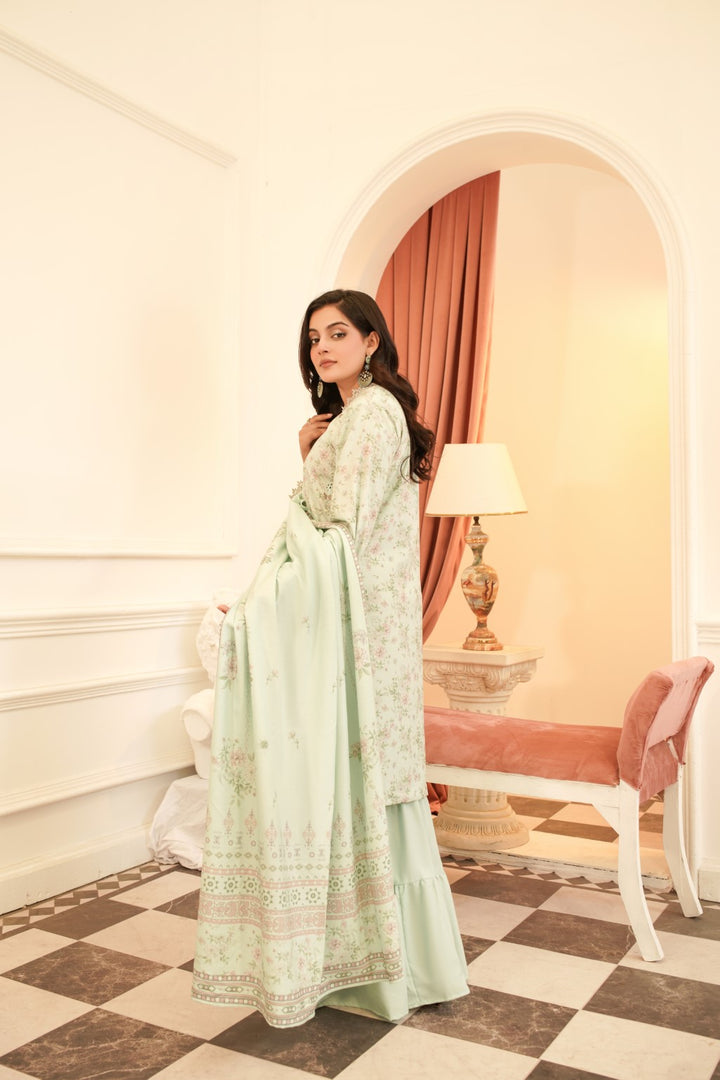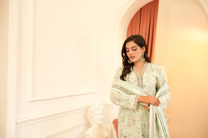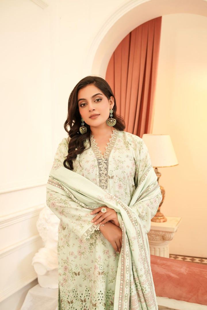 Soft, warm, and effortlessly graceful — this dhanak ensemble is adorned with delicate embroidery in gentle pastel shades, perfect for winter’s serene charm.